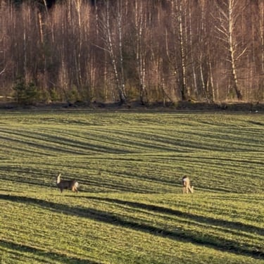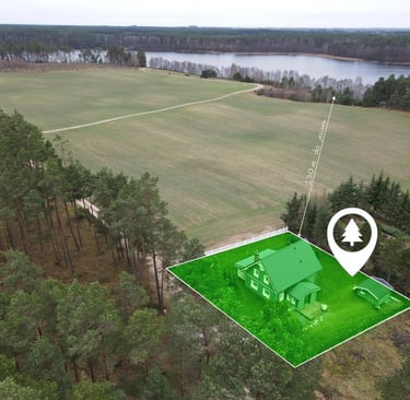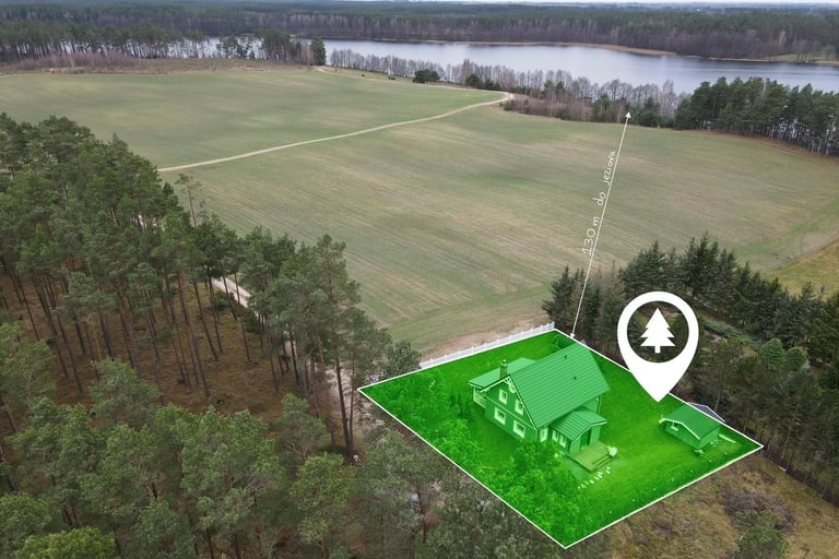 Teren otwarty widokowo na naturę (lasy, łąki, pola). Działka z żadnej strony nie jest bezpośrednio zabudowana.