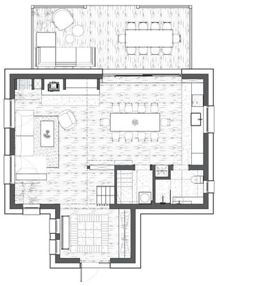 *dom sprzedawany w wysokim standardzie i z wykończeniem ścian, zabudową kuchenną, oświetleniem, lampami dekoracyjnymi, łazienką oraz szafami. Dom sprzedawany bez widocznych elementów ruchomych (sofa, krzesła, stół, obrazy itp).